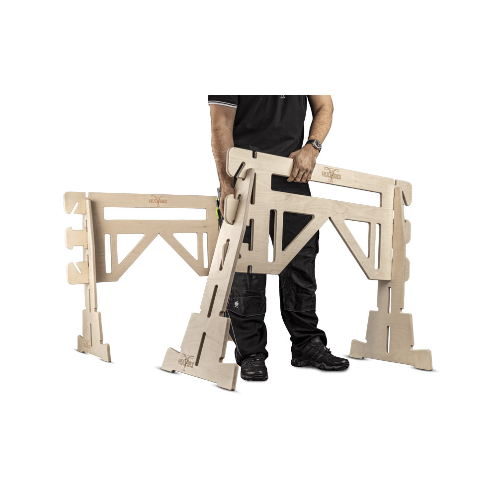 - Der patentierte MULTIBEX Montagebock wird aus 100% Birke Multiplex hergestellt und erweist sich somit als besonders robust, unverwüstlich und langlebig.